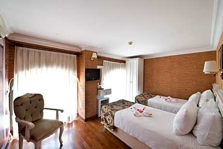 This triple room is classic and spacious incorporating a generous living area and bedroom facility in one. This 66 ft² room offers city view. Free WiFi, 80-cm LCD TV with satellite channels, coffee/tea maker, mini-bar, memory foam bed and a blackout curtains are also standard in this room type. Private bathroom comes with a bathtub or shower with a rainfall shower head and bathrobes.