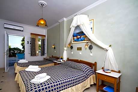 Just 492 feet from Fira’s main square, Golden Star offers affordable accommodations close to all tourist facilities and public means of transport. It features an outdoor pool with hydromassage facilities and a sun terrace with sun loungers. Each of the rooms at Golden Star Hotel is well-furnished and appointed with Greek paintings, a satellite, flat-screen TV and a fridge. Golden Star guests may also benefit from the free parking space, the free wireless internet and the pc that is available for use at the reception. Shuttle service is available upon charge. The impressive caldera with the famous Santorini sunset lies within a 15-minute walk from the hotel. Fira’s vibrant main square, local shops and traditional restaurants and bars are within easy reach.