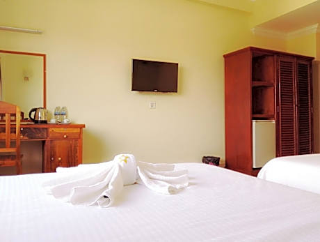 At Golden Star Inn, exceptional service and top-notch amenities create a memorable experience for guests. Complimentary internet access is available in the hotel to ensure you stay connected during your visit. Arrange your trips to and from the airport using the hotel's convenient transportation services booking.Discover the wonders of Sihanoukville with ease by utilizing the services provided by taxi, car hire and shuttle. Complimentary parking is available for guests. Continuously receive the support you require through front desk amenities such as concierge service, luggage storage and safety deposit boxes.At the hotel, their ticket service and tours is also capable of assisting with booking tickets and securing reservations for entertainment and adventures. Always look your best in your preferred attire with the dry cleaning service and laundry service provided at Golden Star Inn. Craving relaxation? In-room amenities such as 24-hour room service, room service and daily housekeeping allow you to maximize your time spent inside the room. Due to health concerns, smoking is strictly prohibited within the entire premises of hotel. For the health and well-being of all guests and staff, smoking is restricted exclusively to assigned zones. Accommodations come equipped with all the conveniences required for a restful night's slumber. A selection of rooms feature linen service and air conditioning to ensure your comfort and convenience.A number of rooms feature cable TV for guest amusement and enjoyment.In certain rooms, the hotel offers visitors access to a refrigerator, a coffee or tea maker and bottled water. Golden Star Inn offers a hair dryer and toiletries in the restrooms of specific accommodations. Allow your journey to be free from the pangs of hunger! On-site eateries offer delicious and accessible meal choices. At Golden Star Inn, affordable refreshments are available 24/7 through the convenient vending machines on-site.