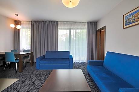 Golden Tulip Gdańsk Residence is located in a quiet area of Gdańsk, near the sandy beach on the Baltic Sea, and features spacious rooms and apartments with free WiFi access, as well as a free indoor pool, a sauna and a steam bath. The property consists of 10 separate buildings. Rooms in Golden Tulip Gdańsk Residence feature a flat-screen TV with satellite channels. There is also an iron with an ironing board. There is also a kitchenette in every room and a bathroom with a shower and free toiletries. Golden Tulip Gdańsk Residence features a 24-hour reception, a green garden and a sun terrace. There is a bicycle rental. Buffet breakfast is served in the property restaurant. There is also a bar. The property also features a modular conference room for up to 200 people. It is 492 feet to a green Ronald Reagan Park, 1.6 mi to the nearest fast city train (SKM) Train Station, and 1.6 mi to Gdańsk Oliwa Park. It is 2.2 mi to the Sopot city center, with a famous pier, and 5.6 mi to the historic Old Town of Gdańsk.