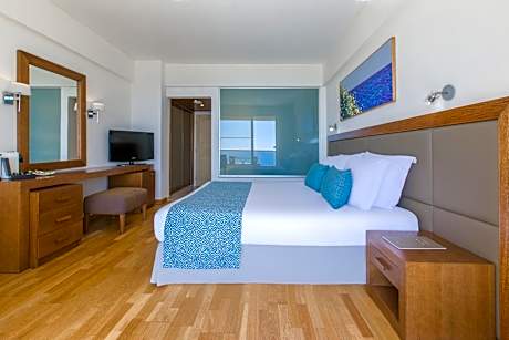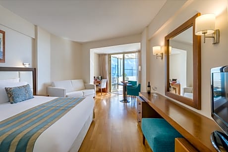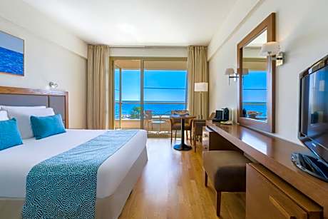 Located in Cyprus near Larnaca Bay, Golden Bay Beach Hotel is right on the beach. It features a large outdoor pool with sun-lounger terrace and on-site private parking. Free Wi-Fi is available in all areas. Golden Bay has grand and mini Suites with balconies, private terraces and hot tub that offer panoramic views of the Mediterranean Sea. Each room has air conditioning and comes equipped with satellite TV and a mini-bar. Golden Bay Beach Hotel offers several dining options. Guests can swim up to the pool bar and order a refreshing drink, or visit the English pub. The hotel is surrounded by landscaped gardens. Indoor and outdoor swimming pools are available, two outdoor artificial grass tennis courts, on-site water sports facilities, a playground and an outdoor swimming pool with water-slide. Guests can enjoy a relaxing massage or beauty treatment at the spa or they can workout at the fully-equipped fitness center. Hotel Golden Bay has a playground and childcare services are also offered. The five conference rooms and the business center are well-equipped with broad facilities for all occasions and events. Larnaca International Airport is 9.3 mi from Golden Bay Hotel. The center of Larnaca is a 15-minute drive away.