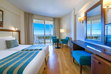 Facing the skyline, the standard front sea and pool view rooms, feature modern decor and furnishings for comfortable stays.