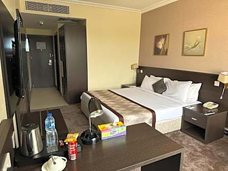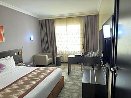 Located in Ibadan, 11 miles from IITA Forest Reserve, Golden Tulip Ibadan has accommodations with an outdoor swimming pool, free private parking, a terrace and a restaurant. With free WiFi, this 4-star hotel offers room service and a 24-hour front desk. Guests can use a bar. The hotel will provide guests with air-conditioned rooms with a desk, an electric tea pot, a minibar, a safety deposit box, a flat-screen TV and a private bathroom with a bidet. The rooms have a closet. Breakfast is available, and includes buffet, à la carte and continental options. Ibadan Airport is 8.7 miles from the property.