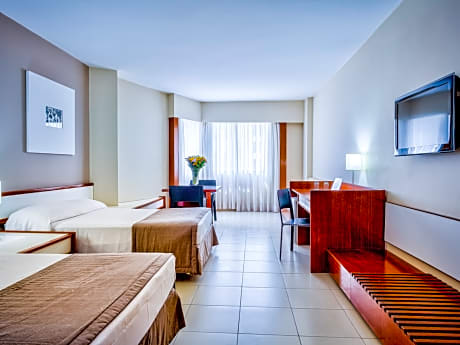 Ideally located right in front of the famous Boa Viagem Beach, within walking distance from various shopping and entertainment options, Grand Mercure Recife Boa Viagem features an outdoor swimming pool and offers free WiFi throughout and private parking. Tastefully decorated with pastel tones, the air-conditioned rooms at Grand Mercure Recife feature a flat-screen TV with cable channels, a desk, a mini-bar and a safe. The private bathroom includes a shower, free toiletries and a hairdryer. Some rooms boast scenic sea views, while others offer a seating area. Enjoy a drink at the on-site bar or have a meal at the Mangabeiras Restaurant. Fresh fruits, breads and cold meats are served on the breakfast buffet every morning in the restaurant. Tea, coffee cold drinks are also available, as well as dietary options like gluten-free bread, lactose-free milk and detox juice. Other facilities at the hotel include a 24-hour front desk and meeting facilities. Recife-Guararapes International Airport can be reached within a 5-minute drive, while the popular handcraft market and the Recife Shopping Center are a 10-minute walk away. The hotel gym is closed indefinitely. As an alternative, we offer our guests daily memberships at the Smartfit gym, which is located 525 feet from the hotel at Rua Ernesto de Paula Santos, 187 - Boa Viagem. To use the facilities of the partner gym, please collect your voucher at the hotel reception, register at smartfit.com.br/vip and enjoy the entire facility for a whole day. For each day of use, it is necessary to collect a new voucher at the hotel reception. Only hotel guests can use the benefit; event guests are not authorized to collect the voucher.