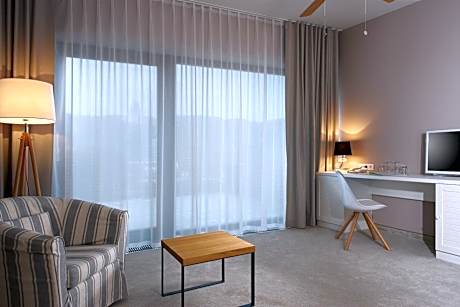 Offering a golf course, an indoor pool and a wellness center with a variety of free services, Cihelny Golf & Wellness Resort is located in the valley of Teplá River, south of Karlovy Vary. The property also features an buffet & à-la-carte restaurant and free Wifi. All rooms are equipped with central ventilation & heating system with individual adjustment & ceiling fans, hotel facilities and feature soundproofing, a safety deposit box and a mini-bar. The bathroom comes with a shower. A hairdryer is provided as well. Opened in June 2015, the spa and wellness center of Golf & Spa Resort Cihelny offers many services for free, including a 4 saunas and small gym. The property also features a garden, a terrace and a children's playground. Business facilities and airport shuttle are available for a surcharge and upon request. Karlovy Vary can be reached within 15 minutes by car or 7 minutes by train. The Cihelny train station is located 1148 feet from the property.
