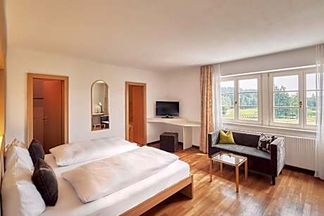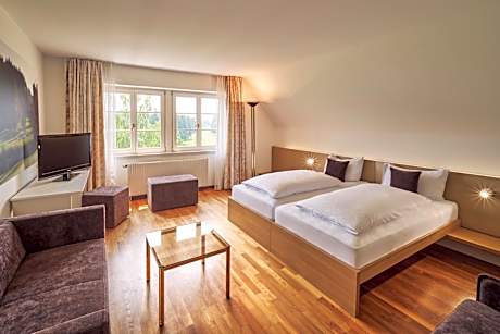 Located in Weißensberg, 12 miles from Casino Bregenz, Golfhotel Bodensee by Michael Ritter provides accommodations with a garden, free private parking, a terrace and a restaurant. Providing a bar, the property is located within 16 miles of Dornbirn Exhibition Center. The hotel features a sauna, room service and free WiFi throughout the property. Guest rooms at the hotel are equipped with a seating area, a flat-screen TV with satellite channels, a safety deposit box and a private bathroom with a shower, free toiletries and a hairdryer. Every room is equipped with a coffee machine, while selected rooms have a balcony and others also provide guests with garden views. All guest rooms include a desk. The breakfast offers buffet, continental or vegetarian options. The area is popular for hiking and cycling, and bike rental is available at Golfhotel Bodensee by Michael Ritter. Messe Friedrichshafen is 17 miles from the accommodation, while Lindau Train Station is 7.5 miles from the property. Friedrichshafen Airport is 18 miles away, and the property offers a paid airport shuttle service.