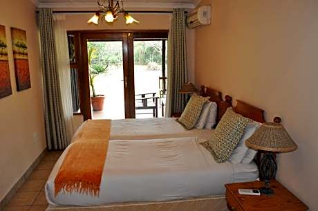 A short drive from Durban, Gooderson Bushlands Game Lodge borders many acres of national park and is surrounded by picturesque African bush. The lodge rooms at Gooderson Bushlands Game Lodge are connected with the bar and pool via wooden walkways. They feature air conditioning and a bathroom with shower. The chalets have catering facilities. Guests booking the self-catering chalet can pre-book dinner in the lodge's dining room at a surcharge. Close to attractions such as the Umfolozi Game Reserve and Isimangaliso Wetland Park, Gooderson Bushlands Game Lodge features a central location in Zululand. Guests can take a charming walk along the nyala trail or enjoy a refreshing drink overlooking the water hole. Game drives, game walks and visits to the nearby DumaZulu Cultural Village as well as to the Cheetah park can be arranged at an additional cost.