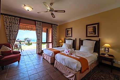This air-conditioned room in colonial style features a lake view or a view of the hills, a seating area and a TV. The bathroom is fitted with a shower.