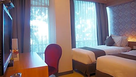 D'primahotel Mega Kuningan provides flawless service and all the necessary facilities for visitors. Remain linked during your visit by utilizing the complimentary internet access available.Prior to your check-in date, you can arrange airport transportation services, guaranteeing a seamless and efficient experience for both arrival and departure.Experience the wonders of Jakarta with ease by utilizing the services provided at taxi.The hotel offers complimentary parking for guests who arrive with their own mode of transport.Effortlessly plan your daily activities and travel requirements with concierge service, luggage storage and safety deposit boxes provided by the front desk services.For extended visits or whenever required, the dry cleaning service and laundry service ensures your preferred travel garments remain clean and accessible. During leisurely days and evenings, in-room amenities such as room service and daily housekeeping enable you to maximize your stay in the room. In limited designated zones, smoking is exclusively permitted.Crafted for coziness, every guestroom provides an array of features, guaranteeing a tranquil night's sleep while maintaining the level of comfort. For a more enjoyable stay, select rooms at hotel are equipped with blackout curtains and air conditioning.At d'primahotel Mega Kuningan, a selection of rooms can be found that showcase unique design elements such as a balcony or terrace.For certain chosen rooms, guests can enjoy in-room amusement like television and cable TV as a part of their stay.Rest assured that your hydration needs will be met, as some guestrooms are equipped with bottled water, a coffee or tea maker, instant coffee, instant tea and mini bar. It is worth noting that certain guest bathrooms feature a hair dryer, toiletries and bathrobes for your convenience. Each morning at d'primahotel Mega Kuningan, a scrumptious, homemade breakfast kick-starts the day.Begin your holiday mornings right with your essential cup of coffee, offered daily at the cafe on-site. During your visit, indulge in a range of delightful culinary choices at hotel to enhance your experience. Concerned about your dining preferences? Fret not! d'primahotel Mega Kuningan offers an assortment of culinary varieties featuring halal choices, catering to all tastes.Experience unparalleled comfort as groceries can be brought right to your room at d'primahotel Mega Kuningan through their distinctive delivery assistance.