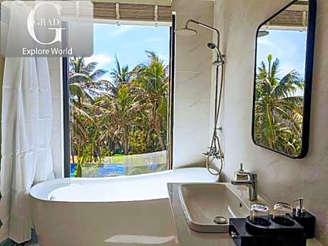Moon Villa offers top-notch services and amenities, ensuring guests experience utmost comfort. Share your photos and respond to emails at your convenience, thanks to the free Wi-Fi internet access offered by hotel.Should you require transportation to or from the airport, hotel is able to organize it prior to your arrival date. Taxi and shuttle offerings at the hotel simplify arranging your excursions, explorations, and additional activities in Huyen Phu Quy. Visitors can take advantage of the accessible parking options directly at the hotel. Reception services such as express check-in or check-out and luggage storage are available to accommodate your requirements. Securing top-notch tickets and snagging sought-after dining reservations become effortless, thanks to the hotel's ticket service and tours. Traveling with minimal luggage is achievable at Moon Villa due to the hotel's laundry service ensuring your garments stay fresh. Room amenities feature room service, allowing you to unwind and make the most of your visit. Smoking is limited to specified smoking zones. Each accommodation at Moon Villa is thoughtfully created and adorned to provide visitors with a comfortable, home-like atmosphere.In select rooms of the hotel, guests can enjoy the advantage of having air conditioning available for their convenience. In select rooms, guests can enjoy a touch of amusement with the availability of television for their entertainment. Rest assured, in a few chosen rooms, the presence of a refrigerator can be found. Moon Villa offers a hair dryer and toiletries in the restrooms of specific accommodations. Should you prefer not to venture out for a meal, the enticing culinary choices at hotel are always available for your satisfaction. Should you be particularly discerning in your dining choices, you will surely appreciate having access to the on-site BBQ facilities provided at this location. Moon Villa provides a superb assortment of leisure amenities for guests to enjoy. Experience the unique private beach at hotel, offering exceptional direct access to the ocean just for you.