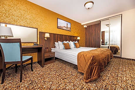 Nestled next to the pine forest in the quiet part of Palanga resort, Gradiali Wellness and SPA Hotel is 1640 feet from the sandy Baltic Sea beach. Access to spa and sauna is included. A discount for medical procedures is offered. The fitness center is free of charge. Decorated with shades of cream and brown colors, all rooms come with a flat-screen TV, a refrigerator and a balcony. Private bathrooms are equipped with heated floors, a shower, bathrobes and free toiletries. Some rooms overlook the forest, others the courtyard and the top floor rooms offer a view of the sea. Guests at Gradiali Wellness and SPA Hotel are welcome to enjoy a variety of massages, herbal bubble baths, underwater massages and other procedures at an extra fee. Complementary unlimited use of gym facilities is available for all guests. The breakfast is served daily at the hotel's restaurant. Guests can also enjoy a drink at the on-site bar. The distance from Gradiali Wellness and SPA Hotel to the center of Palanga and the local bus station is 1.9 mi. The Palanga Airport is 2.5 mi away.