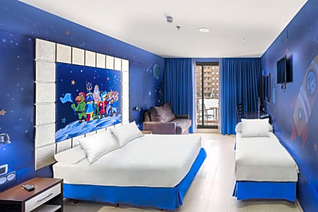 Hotel Magic Sports 4 is located in the Marina d'Or resort, just 820 feet from Oropesa del Mar Beach. It features a large indoor and outdoor swimming pool, as well as a lovely sun terrace with sun loungers. Guests can use the spa and beauty center, and there is a sports area with tennis, basketball and squash courts. The hotel restaurant serves varied buffet meals. It is a sports-themed hotel, with football, basketball, tennis and Formula 1 themed rooms. Sports themed common areas. There is a water park in the hotel's pool area.