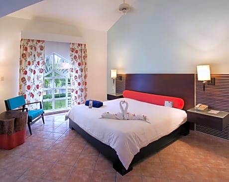 Each spacious room at VH - Gran Ventana Beach Resort features a furnished balcony, daily stocked minibar, cable TV, coffee facilities, and air conditioning. The resort’s bright and colorful decor creates a welcoming atmosphere, perfect for a relaxing vacation.