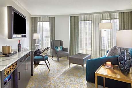 Each guest room at Grand Bohemian Hotel Orlando is designed with elegance in mind, offering 37” flat-screen TVs with channels like HBO and ESPN, ensuring guests stay entertained. The marble bathrooms come equipped with luxury soap products, adding an extra touch of comfort to your stay.