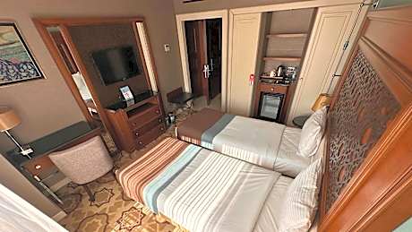 Grand Durmaz Hotel provides flawless service and all the necessary facilities for visitors. Share your photos and respond to emails at your convenience, thanks to the free Wi-Fi internet access offered by hotel. Should you require transportation to or from the airport, hotel is able to organize it prior to your arrival date.Services offered by car hire and shuttle at the hotel ensure effortless exploration of İstanbul. Visitors can take advantage of the accessible parking options directly at the hotel. Reception services such as concierge service, express check-in or check-out, luggage storage and safety deposit boxes are available to accommodate your requirements. Securing top-notch tickets and snagging sought-after dining reservations become effortless, thanks to the hotel's ticket service and tours. Traveling with minimal baggage is achievable at Grand Durmaz Hotel, as the hotel's dry cleaning service and laundry service ensures your garments stay fresh.Room amenities like 24-hour room service, room service and daily housekeeping contribute to making a perfect selection for your stay. The hotel maintains a completely smoke-free zone, providing a breathable atmosphere.Smoking is limited to specified smoking zones. Each accommodation at Grand Durmaz Hotel is thoughtfully created and adorned to provide visitors with a comfortable, home-like atmosphere.In certain rooms, the hotel offers linen service, blackout curtains and air conditioning for guest convenience and satisfaction.At Grand Durmaz Hotel, the uniquely tailored rooms provide a configuration choice resembling a balcony or terrace.In select rooms, guests at the hotel can enjoy top-notch in-room entertainment with television and cable TV available for their convenience.Rest assured, in a few chosen rooms, you will find the convenience of bottled water, a coffee or tea maker, instant coffee and mini bar at your disposal. Maintain your cleanliness and comfort using a hair dryer, toiletries, bathrobes and towels available in select guest restrooms. Embark on your holiday experience in the most ideal manner. Commence each morning of your visit with an on-site breakfast.Experience the delight of a fresh morning by savoring excellent coffee at the cafe situated within hotel.Should you prefer not to venture out for a meal, the enticing culinary choices at hotel are always available for your satisfaction.Experience an unforgettable evening with your fellow travelers just a short distance away, at hotel's bar. Indulge in the numerous pursuits available at Grand Durmaz Hotel. Unwind after a long day by stopping by massage, hot tub, steam room, spa and sauna to rejuvenate your senses. For individuals who don't want to skip their exercise routine, visiting the hotel fitness center ensures you maintain your vitality and wellness.