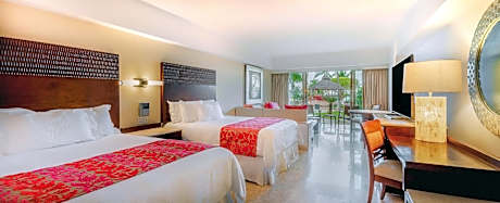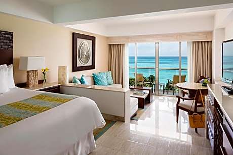 This 5-star beachfront Cancun luxury hotel features a 40,000-square-foot full-service spa that offers full-body treatments, hydrotherapy and beauty services such as hair styling. The El Meco Mayan Ruins is 7 miles from the hotel. Grand Fiesta Americana Coral Beach Cancun - All Inclusive provides a gym with an ocean view. Nine fine-dining restaurants including a AAA Five Diamond french dining experience. Surcharge applies for Le Basilic. Bars are available with room service. Guests may also use the large outdoor pool along with a children’s club. The suites at Grand Fiesta Americana Coral Beach Cancun - All Inclusive include ocean front views or partial ocean views. Every suite features a private balcony and a seating area. For the guest’s convenience, a mini-bar and an in-room safe are also available. Local attractions near the Grand Fiesta Americana Coral Beach Cancun - All Inclusive the Dolphin Discovery Isla Mujeres 7 miles away. Chichen Itza and Xcaret are within driving distance of this hotel.
