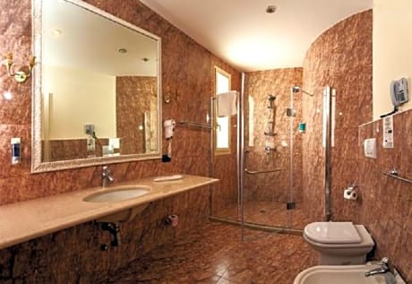 Air-conditioned room with an elegant décor and luxury fabrics. It features free Wi-Fi, a flat-screen TV, and a mini-bar.Some have a spa bath and some have a shower.