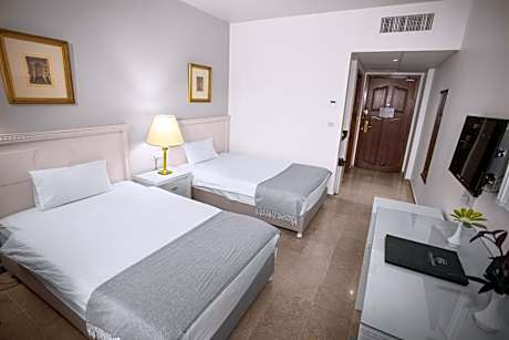 Grand Hotel Madaba provides flawless service and all the necessary facilities for visitors. Share your photos and respond to emails at your convenience, thanks to the free Wi-Fi internet access offered by hotel. Should you desire access to the top entertainment in the city, assistance can be provided by the hotel's tours.Each accommodation at Grand Hotel Madaba is thoughtfully created and adorned to provide visitors with a comfortable, home-like atmosphere. In certain rooms, the hotel offers linen service and air conditioning for guest convenience and satisfaction.At Grand Hotel Madaba, the uniquely tailored rooms provide a configuration choice resembling a balcony or terrace. In select rooms, guests at the hotel can enjoy top-notch in-room entertainment with television and cable TV available for their convenience. Rest assured, in a few chosen rooms, you will find the convenience of a refrigerator, a coffee or tea maker, bottled water and mini bar at your disposal.Maintain your cleanliness and comfort using a hair dryer and toiletries available in select guest restrooms. Embark on your holiday experience in the most ideal manner. Commence each morning of your visit with an on-site breakfast.Experience an unforgettable evening with your fellow travelers just a short distance away, at hotel's bar. Indulge in the numerous pursuits available at Grand Hotel Madaba.Each day at hotel, immerse yourself in the invigorating waters of the pool, perfect for a rejuvenating plunge or a series of revitalizing laps.