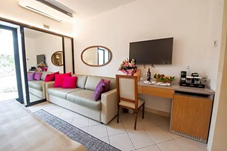 Offering a free shuttle to its private beach and a spa, Grand Hotel Masseria Santa Lucia is set in a refurbished Apulian masseria, a fortified rural complex. The seaside is 1640 feet away and free Wi-Fi is available throughout the hotel. Masseria Santa Lucia preserves original architectural features in all common areas and guest rooms. All air-conditioned rooms offer a patio, an LCD TV and cool tiled floor. Breakfast is a continental buffet including fresh seasonal fruit, homemade pastries and cold cuts. The restaurant serves traditional, local cuisine. During summer meals are served in the orange grove. The wellness area is equipped with an outdoor heated pool, sauna, sensory shower and an ice waterfall. The available sports facilities include an outdoor swimming pool, a modern gym and tennis courts.