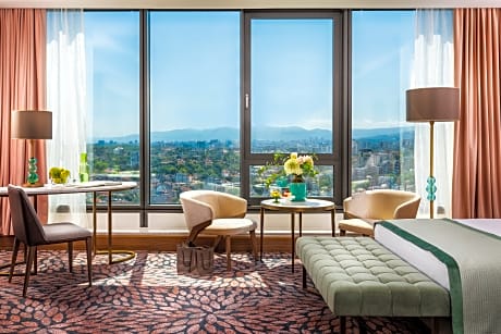 Grand Hotel Millennium Sofia is located in the heart of the city, at a walking distance from the vibrant city center area, filled with iconic historical and cultural sights, vast green parks and numerous government institutions. The hotel features spa center at surcharge, 5 restaurants, fitness center, bars and shared lounges. The accommodations provides a 24-hour front desk, helipad, convention center, room service and ticket service for guests. The interior benefits from a six-story Atrium. All units are equipped with air conditioning, electric remote-controlled curtains, floor-to-ceiling soundproof windows and a flat-screen TV with satellite channels. The private bathroom features a bathtub and a rainfall shower, bathrobe and slippers, professional hair dryer and luxury bath amenities. Rooms provide guests with views of the park, the mountain and the city. Buffet breakfast is served daily at the accommodations. Millennium Spa and Wellness Center offers a panoramic swimming pool, hydromassage hot tubs, a Finland bath with panorama view, aroma and infrared sauna, marine salt steam bath, Oriental hammam bath, Himalayan salt room, relax room with waterbeds and Thai massage zone. Payable service. Limited children's access from 10 am -1 pm and from 5 - 6 pm every day. Grand Hotel Millennium Sofia features also a gift shop and newspapers for its guests. National Palace of Culture is 1969 feet from the hotel, while Presidency is 1.2 mi away. The nearest Sofia airport is 6.8 mi from Grand Hotel Millennium Sofia, and the property offers a paid airport shuttle service. The nearest metro station is a 5-minute walk away.