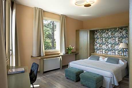 Grand Hotel Panoramic is a 4-star hotel, located at the northern borders of the renowned thermal parks in Montecatini Terme. The Panoramic is surrounded by a green garden, its facilities are modern and efficient, its halls are luminous and restful. An impressive winter garden, with large glass windows, faces the terrace with swimming pool. Rooms and suites at Grand Hotel Panoramic are individually furnished. Some rooms offer a spa bath, some 2 bathrooms, and some come with a panoramic balcony or a little garden. Grand Hotel Panoramic is member of Montecatini Golf, with a 40% reduction on green fees.