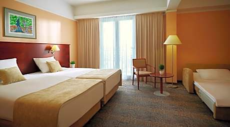 Located in the heart of the seaside resort, Grand Hotel Portorož is an exclusive 4-star superior property offering a genuine Mediterranean flair with comfortable and well-appointed accommodations and free WiFi throughout the property. A highlight is the spa center Terme Portorž, boasting a complex of indoor swimming pools with thermo-mineral water, a spacious sun terrace, and superior wellness treatments. The center, accessible directly from the hotel, will certainly enhance the luxurious feel of the stay. Those who prefer seawater will enjoy the Sea Spa swimming pools located in the immediate vicinity. The entrance to both swimming venues, morning access to the fitness center, entry to both the Riviera and Grand Portoroz Casinos, and the entertainment program are all included in the price. Guests can also enjoy complimentary access to the Meduza 4-star beach sun terraces, while deckchairs and sunshades are available at a surcharge. For those who love to relax in a pleasant atmosphere or music evenings, Cafe Central will be the perfect choice. The staff will pamper guests with homemade pastries and ice-cream, cocktails and fine cigars.