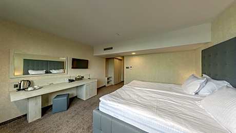 Directly set on the shores of the Danube River, the award-winning Grand Hotel Riga is only 1312 feet from the Ruse Main Square. It offers free WiFi, summer garden, a breakfast and free parking. All rooms and suites provide air conditioning, a comfortable seating area and a flat-screen cable TV. All rooms have a view of the river. On each of the floors there are two common panoramic terraces, offering designated smoking space. The renowned Panorama Restaurant features a panoramic view of the city and the harbor, and serves pan-European cuisine. Guests can also enjoy their meals in the restaurant Gardea. The extravagant-style lobby. A garden restaurant and a summer lounge bar are also part of the Grand Hotel Riga, the biggest hotel complex in Ruse. The Congress Center of the hotel offers multifunctional meeting rooms with capacity from 10 to 400 seats.