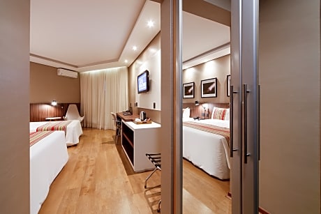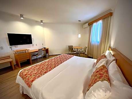 Grand Hotel Royal offers a convenient location 1.9 mi from downtown Sorocaba, and 40 mi from Viracopos Airport. It features peach-colored rooms with free Wi-Fi, a restaurant and bar. The modern rooms at Grand Hotel Royal have large floodlit windows and decorative fabrics. All are equipped with air conditioning, TV and a mini-bar. Guests can enjoy international cuisine and room service from the restaurant, while the bar offers cocktails and liquors. A breakfast buffet with seasonal fruits, fresh cakes and bread rolls is available. Grand Hotel Royal is 1.9 mi from Santa Rosália mall, and 6.2 mi from Castelo Branco Road, one of São Paulo´s major roads. Valet Parking (additional costs).