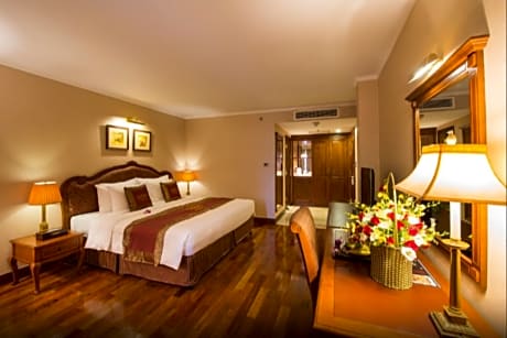 Hotel Grand Saigon provides flawless service and all the necessary facilities for visitors.Stay connected with your associates, as complimentary Wi-Fi is available during your entire visit. To facilitate your arrival and departure, you can pre-book airport transfer services prior to checking in.The hotel offers taxi amenities to assist you in discovering your desired offerings in Ho Chi Minh City. The hotel offers reception amenities including concierge service, express check-in or check-out, luggage storage and safety deposit boxes to ensure a comfortable stay for guests. Should you require it, the tours can even assist you in booking tickets and securing reservations for the finest shows and events in the vicinity.Whether it's an extended stay or simply needing fresh attire, dry cleaning service and laundry service provided by hotel ensures your cherished travel garments stay spotless and accessible.Your stay will be comfortable with the presence of 24-hour room service, room service and daily housekeeping as an in-room amenity for your relaxation and enjoyment. Need something at the last minute? The convenience stores has you covered, ensuring your requirements are met without any inconvenience.Smoking is permitted solely in the specified smoking zones allocated by hotel. In order to ensure the utmost level of relaxation, the guestrooms feature an inviting design and are equipped with all basic necessities, creating a delightful stay experience. To ensure a pleasant stay, a selection of rooms at hotel come furnished with linen service, blackout curtains and air conditioning, all designed with your ease in mind.In select rooms, visitors can enjoy a touch of amusement with the availability of daily newspaper, television and cable TV for their entertainment needs. Within specific rooms, a refrigerator, a coffee or tea maker, bottled water, instant coffee, instant tea and mini bar is conveniently available for your use.Understanding the significance of bathroom facilities in enhancing visitor contentment, hotel offers a hair dryer, toiletries and bathrobes within a few chosen chambers. Start your day stress-free at Hotel Grand Saigon as breakfast is made available for you on the premises.How about kicking off each day of your getaway with a delicious cup of coffee? At the hotel, relish in the invigorating taste of a freshly brewed, excellent coffee.Various excellent meal offerings at hotel ensure that enticing and easily accessible options are constantly available. Upon your arrival, don't miss experiencing bar for enjoyable in-house evening entertainment. Throughout the day, engage in the entertaining activities available at Hotel Grand Saigon.Unwind and conclude each day delightfully by stopping by salon, steam room and spa, ensuring a soothing experience. Unwind by the pool at hotel and cherish a leisurely moment.Enjoy a refreshing beverage al fresco at hotel's poolside bar savoring your preferred concoction. Guests who enjoy maintaining their fitness regimen while on holiday can visit the fitness center provided by hotel.