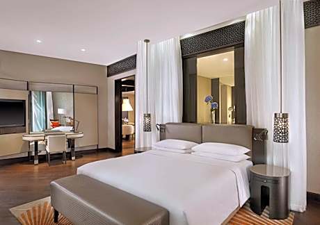Great care is taken to ensure guests experience comfort through top-notch services and amenities. To facilitate your arrival and departure, you can pre-book airport transfer services prior to checking in.The hotel's daily housekeeping ensures an excellent option for your stay.Smoking is permitted solely in the specified smoking zones allocated by hotel. In order to ensure the utmost level of relaxation, the guestrooms feature an inviting design and are equipped with all basic necessities, creating a delightful stay experience. To ensure a pleasant stay, a selection of rooms at hotel come furnished with blackout curtains and air conditioning, all designed with your ease in mind.At Grand Hyatt Abu Dhabi Hotel Residences, various room configurations are available, featuring separate living room and balcony or terrace in some rooms. In select rooms, visitors can enjoy a touch of amusement with the availability of daily newspaper, in-room video streaming and cable TV for their entertainment needs.Within specific rooms, a refrigerator, instant tea and mini bar is conveniently available for your use. Understanding the significance of bathroom facilities in enhancing visitor contentment, hotel offers a hair dryer, toiletries and bathrobes within a few chosen chambers. To experience refined leisure, do not miss the opportunity to drop by the executive lounge. Various excellent meal offerings at hotel ensure that enticing and easily accessible options are constantly available. Throughout the day, engage in the entertaining activities available at Grand Hyatt Abu Dhabi Hotel Residences. Make sure to discover the readily available beach at hotel. Unwind effortlessly each day by exploring the spa, conveniently situated within the hotel.Guests who enjoy maintaining their fitness regimen while on holiday can visit the fitness center provided by hotel.