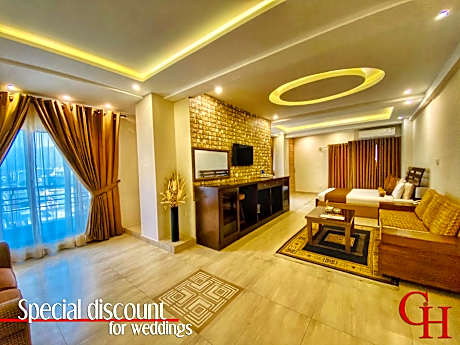 Located in Islamabad, 6.1 miles from Shah Faisal Mosque, Grand Islamabad Hotel has accommodations with a garden, free private parking, a terrace and a restaurant. With free WiFi, this 3-star hotel offers room service and a 24-hour front desk. The hotel has family rooms. At the hotel, all rooms include a desk. Complete with a private bathroom equipped with a shower and free toiletries, all rooms at Grand Islamabad Hotel have a flat-screen TV and air conditioning, and selected rooms also offer a balcony. Guest rooms will provide guests with a fridge. Lake View Park is 14 miles from the accommodation, while Ayūb National Park is 15 miles from the property. Islamabad International Airport is 18 miles away.
