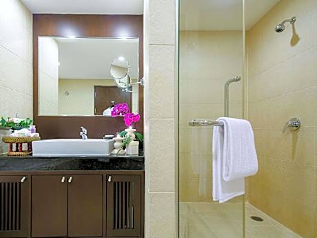 Grand Mercure Bangkok Asoke Residence provides flawless service and all the necessary facilities for visitors. Share your photos and respond to emails at your convenience, thanks to the free Wi-Fi internet access offered by hotel. Should you require transportation to or from the airport, hotel is able to organize it prior to your arrival date.Services offered by car hire and shuttle at the hotel ensure effortless exploration of Bangkok. Visitors can take advantage of complimentary parking directly at the hotel. Reception services such as concierge service, express check-in or check-out, luggage storage and safety deposit boxes are available to accommodate your requirements. Should you desire access to the top entertainment in the city, assistance can be provided by the hotel's tours.Traveling with minimal baggage is achievable at Grand Mercure Bangkok Asoke Residence, as the hotel's laundromat, dry cleaning service and laundry service ensures your garments stay fresh. Room amenities like room service and daily housekeeping contribute to making a perfect selection for your stay.Smoking is limited to specified smoking zones.Each accommodation at Grand Mercure Bangkok Asoke Residence is thoughtfully created and adorned to provide visitors with a comfortable, home-like atmosphere. In certain rooms, the hotel offers linen service, blackout curtains and air conditioning for guest convenience and satisfaction. At Grand Mercure Bangkok Asoke Residence, uniquely crafted rooms provide various layout choices, featuring spaces equipped with separate living room and balcony or terrace. In select rooms, guests at the hotel can enjoy top-notch in-room entertainment with television and cable TV available for their convenience. Rest assured, in a few chosen rooms, you will find the convenience of a refrigerator, a coffee or tea maker, bottled water, instant coffee and instant tea at your disposal.Maintain your cleanliness and comfort using a hair dryer, toiletries and bathrobes available in select guest restrooms. Embark on your holiday experience in the most ideal manner. Commence each morning of your visit with an on-site breakfast. Experience the delight of a fresh morning by savoring excellent coffee at the cafe situated within hotel.Should you prefer not to venture out for a meal, the enticing culinary choices at hotel are always available for your satisfaction.Experience an unforgettable evening with your fellow travelers just a short distance away, at hotel's bar. For those who prefer savoring meals within their personal space, Grand Mercure Bangkok Asoke Residence offers the convenience of doorstep grocery delivery, allowing you to prepare and enjoy food in your room. Indulge in the numerous pursuits available at Grand Mercure Bangkok Asoke Residence. Unwind after a long day by stopping by massage, steam room and sauna to rejuvenate your senses.Each day at hotel, immerse yourself in the invigorating waters of the pool, perfect for a rejuvenating plunge or a series of revitalizing laps. For individuals who don't want to skip their exercise routine, visiting the hotel fitness center ensures you maintain your vitality and wellness.