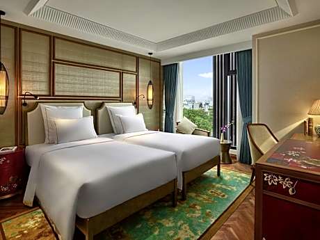 Great care is taken to ensure guests experience comfort through top-notch services and amenities. Stay connected with your associates, as complimentary Wi-Fi is available during your entire visit. To facilitate your arrival and departure, you can pre-book airport transfer services prior to checking in.The hotel offers taxi amenities to assist you in discovering your desired offerings in Hanoi.When arriving by car, you'll be grateful for the on-site complimentary parking at hotel.The hotel offers reception amenities including concierge service, express check-in or check-out, luggage storage and safety deposit boxes to ensure a comfortable stay for guests. Should you require assistance, the ticket service and tours can also aid in booking tickets and securing reservations at the finest shows and events in the vicinity. Whether it's an extended stay or simply needing fresh attire, dry cleaning service and laundry service provided by hotel ensures your cherished travel garments stay spotless and accessible.Your stay will be comfortable with the presence of 24-hour room service, room service and daily housekeeping as an in-room amenity for your relaxation and enjoyment.To ensure the well-being and convenience of all visitors, smoking is strictly prohibited throughout the entire hotel. Smoking is permitted solely in the specified smoking zones allocated by hotel.In order to ensure the utmost level of relaxation, the guestrooms feature an inviting design and are equipped with all basic necessities, creating a delightful stay experience.To ensure a pleasant stay, a selection of rooms at hotel come furnished with linen service, blackout curtains and air conditioning, all designed with your ease in mind. Several chosen accommodations at Grand Mercure Hanoi have a separate living room incorporated into the room design.In select rooms, visitors can enjoy a touch of amusement with the availability of television and cable TV for their entertainment needs. Within specific rooms, a refrigerator, bottled water, a coffee or tea maker, instant coffee, instant tea and mini bar is conveniently available for your use.Understanding the significance of bathroom facilities in enhancing visitor contentment, hotel offers a hair dryer, toiletries and bathrobes within a few chosen chambers. To experience refined leisure, do not miss the opportunity to drop by the executive lounge. Start your day stress-free at Grand Mercure Hanoi as breakfast is made available for you on the premises. Various excellent meal offerings at hotel ensure that enticing and easily accessible options are constantly available.Upon your arrival, don't miss experiencing bar for enjoyable in-house evening entertainment. Throughout the day, engage in the entertaining activities available at Grand Mercure Hanoi. Unwind and conclude each day delightfully by stopping by massage, steam room, spa and sauna, ensuring a soothing experience.Unwind by the pool at hotel and cherish a leisurely moment. Enjoy a refreshing beverage al fresco at hotel's poolside bar savoring your preferred concoction.Guests who enjoy maintaining their fitness regimen while on holiday can visit the fitness center provided by hotel.