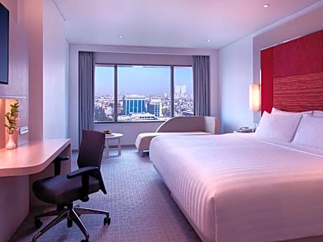 Experience an abundance of unparalleled facilities and features at Grand Mercure Jakarta Harmoni Hotel.Maintain seamless communication using the complimentary Wi-Fi at hotel. Effortlessly arrange transportation to and from the airport using the hotel's airport transfer services.Discovering Jakarta becomes even more accessible through the taxi, car hire and shuttle amenities provided at the hotel. For visitors traveling by automobile, complimentary parking is available. During your stay at this fantastic hotel, the attentive front desk personnel can provide you with a range of amenities such as concierge service, express check-in or check-out, luggage storage and safety deposit boxes. In search of city's top entertainment, seek assistance at the hotel's ticket service and tours for reservations.During chilly days and evenings, the hotel provides an in-house fireplace to ensure your warmth.At the hotel, utilize the on-site dry cleaning service and laundry service to maintain your beloved travel attire fresh, allowing you to bring fewer clothes.Craving relaxation? Make the most of your stay at the Grand Mercure Jakarta Harmoni Hotel with convenient amenities like 24-hour room service, room service and daily housekeeping at your disposal.For all your minor, last-minute requirements, the convenience stores can promptly cater to them, eliminating the need to venture out. For visitors wishing to smoke, designated smoking zones can be found.At Grand Mercure Jakarta Harmoni Hotel, every guestroom is provided with convenient amenities and fittings to ensure a comfortable stay.Enhance your experience at hotel with the knowledge that certain rooms are equipped with linen service, blackout curtains and air conditioning for your convenience. A few accommodations within Grand Mercure Jakarta Harmoni Hotel offer unique design elements such as a separate living room.Certain rooms boast in-room amusement features such as daily newspaper, television and cable TV, offering guests an enjoyable stay. In select rooms within the hotel, a refrigerator, bottled water, a coffee or tea maker, instant coffee and mini bar is available to cater to your requirements when desired.In the hotel, certain guest bathrooms come equipped with essential bathroom amenities, such as a hair dryer, toiletries and bathrobes, ensuring a comfortable stay for guests. Begin your day with a scrumptious on-site breakfast available each morning at Grand Mercure Jakarta Harmoni Hotel.Begin your day feeling refreshed and invigorated as you enjoy a delightful cup of quality coffee available at the cafe situated within the hotel.At the hotel, an assortment of easily accessible and delicious meal choices are available to satisfy your appetite whenever it strikes.At Grand Mercure Jakarta Harmoni Hotel, they are committed to catering to your unique requirements. They offer a variety of meal choices, encompassing halal alternatives for those with special dietary preferences. Enjoy an entertaining evening with your fellow travelers at the hotel's bar.During your stay at hotel, an array of engaging activities and amenities guarantees a delightful experience. Conclude your holiday perfectly with a visit to massage, hot tub, steam room, spa and sauna on your final days.Be sure to drop by the pool at hotel at least once during your stay.At Grand Mercure Jakarta Harmoni Hotel, utmost care is taken to ensure guests' comfort. Relish your preferred beverage in your swimwear by the hotel's poolside bar.Discover the fitness amenities at hotel to maintain your health and strength during your getaway.