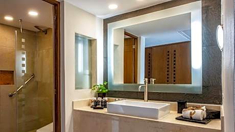 Grand Park Royal Cancun is located on a private 500-yard stretch of beach on the Caribbean Sea. It features 2 outdoor pools and 4 restaurants and lounges. All rooms at Grand Park Royal Cancun - All Inclusive have a sea view, balcony, mini-bar and flat-screen satellite TV. Rooms also have an iron and a desk. The villas offer butler service and 24-hour room service. Dining options include El Mirador restaurant, which offers breakfast and dinner a la carte, with Italian dishes in a fine-dining environment, Cocay restaurant offers a buffet with international cuisine, Flor de Sal offers seafood dishes for lunch & Mexican menu for dinner and Koi Restaurant serves oriental cuisine. Guests can enjoy outdoor massages and spa treatments. The property also offers access to a fitness center, for an additional cost. Cancun International Airport is a 30-minute drive away. License Number(s): 01230050473