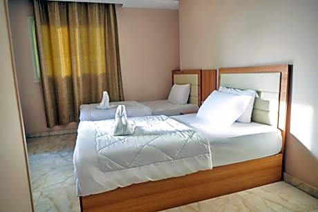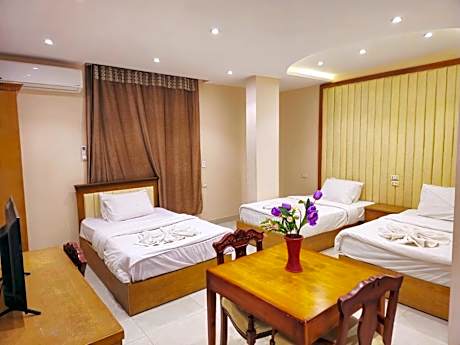 In a prime location in the Giza district of Cairo, Grand Pyramid View Hotel is located a 12-minute walk from Great Sphinx, 1.2 miles from Giza Pyramids and 9.2 miles from Cairo Tower. With a terrace, the 3-star hotel has air-conditioned rooms with free WiFi, each with a private bathroom. There's a restaurant serving Local cuisine, and free private parking is available. All guest rooms at the hotel are equipped with a seating area and a flat-screen TV with satellite channels. All rooms are equipped with an electric tea pot, while some rooms come with a patio and others also have city views. All rooms will provide guests with a fridge. The breakfast offers continental, vegetarian or vegan options. Guests at Grand Pyramid View Hotel will be able to enjoy activities in and around Cairo, like hiking, skiing and cycling. Languages spoken at the 24-hour front desk include Arabic, German, English and Spanish. Tahrir Square is 10 miles from the accommodation, while The Egyptian Museum is 10 miles from the property. Cairo International Airport is 19 miles away, and the property offers a paid airport shuttle service.