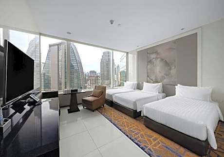 At Grande Centre Point Hotel Terminal 21, exceptional service and top-notch amenities create a memorable experience for guests. Complimentary internet access is available in the hotel to ensure you stay connected during your visit.Arrange your trips to and from the airport using the hotel's convenient transportation services booking. Amenities at taxi offered by Grande Centre Point Hotel Terminal 21 simplify the organization of your excursions, tourist activities, and other adventures in Bangkok.Complimentary parking is available for guests. Continuously receive the support you require through front desk amenities such as concierge service and luggage storage. Always look your best in your preferred attire with the dry cleaning service and laundry service provided at Grande Centre Point Hotel Terminal 21. Craving relaxation? In-room amenities such as 24-hour room service, room service and daily housekeeping allow you to maximize your time spent inside the room. Due to health concerns, smoking is strictly prohibited within the entire premises of hotel.For the health and well-being of all guests and staff, smoking is restricted exclusively to assigned zones.Accommodations come equipped with all the conveniences required for a restful night's slumber.A selection of rooms feature linen service, blackout curtains and air conditioning to ensure your comfort and convenience. A few accommodations at Grande Centre Point Hotel Terminal 21 also include unique design elements like a separate living room.A few chosen rooms are equipped with television and cable TV to ensure guest amusement. In certain rooms, the hotel offers visitors access to a refrigerator, bottled water, instant coffee and mini bar. Grande Centre Point Hotel Terminal 21 offers a hair dryer, toiletries, bathrobes and towels in the restrooms of specific accommodations. A delightful breakfast is the perfect way to begin your day, and at Grande Centre Point Hotel Terminal 21, you can always indulge in a scrumptious meal on-site.Allow your journey to be free from the pangs of hunger! On-site eateries offer delicious and accessible meal choices. At Grande Centre Point Hotel Terminal 21, affordable refreshments are available 24/7 through the convenient vending machines on-site. At Grande Centre Point Hotel Terminal 21, guests can take pleasure in the delightful recreational amenities provided for their entertainment.Conclude your days in complete tranquility by paying a visit to hot tub, steam room, spa and sauna for ultimate relaxation.At Grande Centre Point Hotel Terminal 21, a wide array of amenities guarantees a fulfilling experience throughout your visit. Make your holiday truly memorable by taking a rejuvenating plunge into the pool.At Grande Centre Point Hotel Terminal 21, the poolside bar provides an excellent incentive to enjoy extended hours in your swimwear.At the hotel fitness center, you have the option to engage in your daily exercise routine or simply alleviate your jet lag by breaking a sweat.