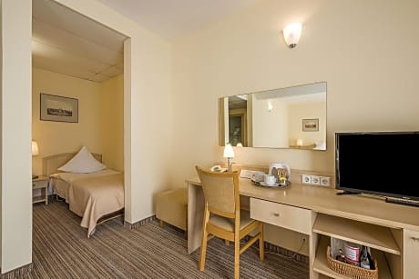 The 3-star Grata by Centrum Hotels front desk is open from 7AM till 3AM every day. It features rooms with free Wifi. All rooms at the Grata by Centrum Hotels are classically furnished and decorated with warm tones. Each comes with tea and coffee-making facilities and a work desk. Front desk staff is available from 7:00AM to 3:00AM every day and can assist with luggage storage and laundry services. Shuttle services can be arranged. Monitored parking in a garage is possible on availability. A buffet breakfast is served every morning in the hotel restaurant. Guests can enjoy a drink at summer garden or lobby fromthe self service bar at the reception. Grata by Centrum Hotels is located 0.6 mi from the Vingis Park and many popular clubs and shops. Vilnius International Airport is only 3.7 mi away.