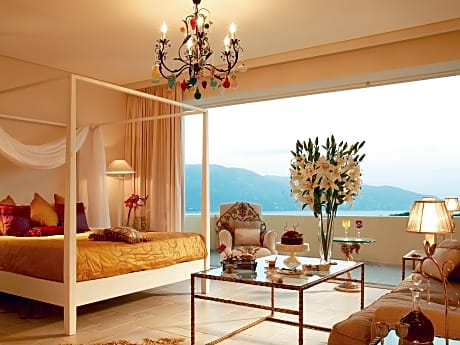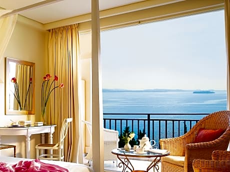 The hotel is nestles at the foot of the Kommeno peninsula, just 10 km from the historical town of Corfu, between the villages of Dassia and Gouvia. Both offer a wide choice of shops, cafes and restaurants, all within easy reach of the establishment. The service, choice of accommodation in the main building or garden bungalows, the peaceful location and shady gardens make this hotel the ideal choice for couples of all ages. The elegant guestrooms feature gorgeous views of exotic gardens and Corfu's shoreline. Canopy beds, cream-colored tile floors, bleached-wood furniture and luxurious bathrooms, all feature as standard in the charming accommodations to provide the perfect ambience for an unforgettable stay.