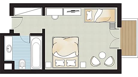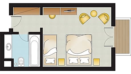 Double Room Garden View includes either a double bed 131-150 width or 2 single beds 80-130 width plus balcony, terrace, satellite tv , hairdryer, and safe.
