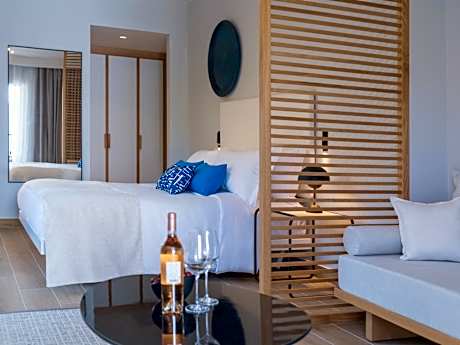Domes Noruz Kassandra is a luxury lifestyle resort designed exclusively for adults. Located on the Kassandra peninsula of Chalkidiki, Greece, the resort is located just 1969 feet from the bustling village of Chanioti and 57 mi from Thessaloniki's Makedonia airport. The resort features a beach club with rooms that have access to a white sandy/pebble blue flag awarded beach with crystal clear turquoise and blue ink water. With 156 rooms, Domes Noruz Kassandra provides a comfortable and elegant stay in a stunning location. The rooms at Domes Noruz Kassandra come equipped with furnished balconies or terraces and feature an all-white, chic décor. The spa-inspired bathrooms add an extra touch of luxury to the guest experience, and the fully stocked Maxi bar in every room, complete with mixology tools, offers added convenience. The resort is located near many vibrant beach bars, incredible beaches, and the bustling nightclub scene of Chalkidiki. It also features two signature restaurants, and a signature sushi and cocktail bar, to cater to all dining needs. Additionally, there is a single swimming pool on the premises for guests to enjoy, fully equipped with premium sun loungers and umbrellas, and beach bar service by the pool and on the beach. The Domes Noruz Kassandra is a getaway for those who are attuned to the global day-life and nightlife scene. It prides itself on being a home base for exploring the legendary clubbing of Chalkidiki, Greece, as the resort's 24/7 pre-clubbing celebratory ambiance sets the tone for a memorable experience. With live music, chef battles, and fashion shows, guests are guaranteed a great time. The resort also prioritizes wellness, with an open-air gym and sunset yoga sessions, and the team of lifestyle experts, carries on the Domes’ concierge culture, dedicated to connecting guests to the best of Chalkidiki.