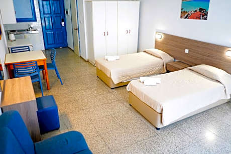 This family-run complex features an outdoor tiled pool and bungalow accommodations with fully equipped kitchenettes. With a central location in Ayia Napa, it is a 5-minute walk from Limanaki Beach. Green Bungalows Hotel Apartments offers a 24-hour poolside bar with a shaded terrace, and a restaurant serving à la carte specialties. The bungalows are practically furnished with a fridge and a cozy seating area. They all feature a balcony with views of the hotel’s garden or pool. Air conditioning comes standard. Guests can relax in the hot tub, or play a game of table tennis with friends. Younger guests can have fun on the children’s playground. Free WiFi is provided throughout. Green Bungalows Hotel Apartments is 2 minutes’ walk from the famous Ayia Napa Strip and the ancient Ayia Napa Monastery. Free private parking is available on site.