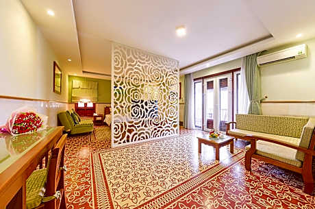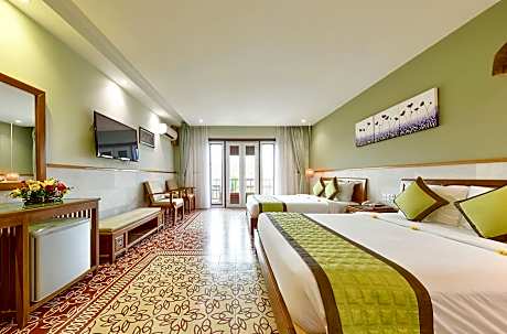 Experience an abundance of unparalleled facilities and features at Green Heaven Hoi An Resort and Spa. Maintain seamless communication using the complimentary Wi-Fi at resort.Effortlessly arrange transportation to and from the airport using the resort's airport transfer services. Discovering Hoi An becomes even more accessible through the taxi, car hire and shuttle amenities provided at the resort. For visitors traveling by automobile, complimentary parking is available. During your stay at this fantastic resort, the attentive front desk personnel can provide you with a range of amenities such as concierge service, express check-in or check-out, luggage storage and safety deposit boxes.In search of city's top entertainment, seek assistance at the resort's ticket service and tours for reservations.During chilly days and evenings, the resort provides an in-house fireplace to ensure your warmth.At the resort, utilize the on-site laundromat, dry cleaning service and laundry service to maintain your beloved travel attire fresh, allowing you to bring fewer clothes. Craving relaxation? Make the most of your stay at the Green Heaven Hoi An Resort and Spa with convenient amenities like room service and daily housekeeping at your disposal. For all your minor, last-minute requirements, the convenience stores can promptly cater to them, eliminating the need to venture out. Kindly note that smoking is prohibited in the resort to ensure fresher air for all visitors. For visitors wishing to smoke, designated smoking zones can be found.At Green Heaven Hoi An Resort and Spa, every guestroom is provided with convenient amenities and fittings to ensure a comfortable stay. Enhance your experience at resort with the knowledge that certain rooms are equipped with blackout curtains and air conditioning for your convenience.A few accommodations within Green Heaven Hoi An Resort and Spa offer unique design elements such as a balcony or terrace.Certain rooms boast in-room amusement features such as television and cable TV, offering guests an enjoyable stay. In select rooms within the resort, a refrigerator, a coffee or tea maker, bottled water, instant tea and mini bar is available to cater to your requirements when desired.In the resort, certain guest bathrooms come equipped with essential bathroom amenities, such as a hair dryer, toiletries and bathrobes, ensuring a comfortable stay for guests. Begin your day carefree at Green Heaven Hoi An Resort and Spa, as complimentary breakfast is offered for your convenience. Begin your day feeling refreshed and invigorated as you enjoy a delightful cup of quality coffee available at the cafe situated within the resort.At the resort, an assortment of easily accessible and delicious meal choices are available to satisfy your appetite whenever it strikes. Enjoy an entertaining evening with your fellow travelers at the resort's bar.At the resort, discerning guests can also enjoy on-site culinary facilities like BBQ facilities tailored to their preferences. During your stay at resort, an array of engaging activities and amenities guarantees a delightful experience. Conclude your holiday perfectly with a visit to massage, salon, solarium, steam room, spa and sauna on your final days. Be sure to drop by the pool at resort at least once during your stay.At Green Heaven Hoi An Resort and Spa, utmost care is taken to ensure guests' comfort. Relish your preferred beverage in your swimwear by the resort's poolside bar. Discover the fitness amenities at resort to maintain your health and strength during your getaway.