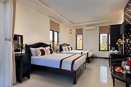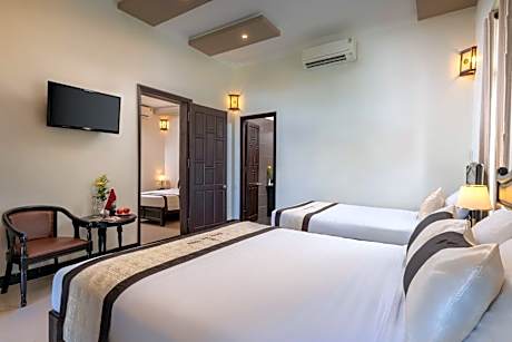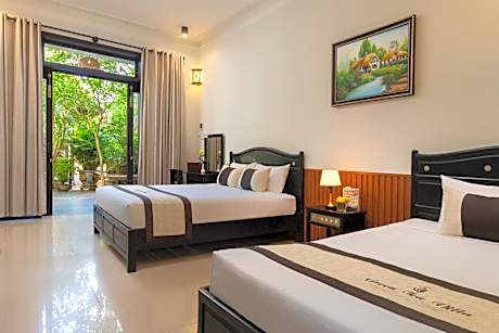 Green Tea Villa is an affordable property located in the ancient town of Hoi An. Guests can utilize the free laundry facilities and enjoy free Wi-Fi access at all areas. Only 656 feet from Hoi An Market, the homestay is also 2.5 mi from Cua Dai Public Beach. Da Nang International Airport is 19 mi away with airport shuttle services available at a surcharge. The accommodations will provide you with a flat-screen cable TV, private balcony and fully stocked mini-bar. Complete with free toiletries and bath towels, the private bathrooms also include hot-water showers. Green Tea Villa houses a common lounge area where guests can socialize and unwind. Other facilities include luggage storage space and free bicycle rentals. The property can also arrange for car, motorbike and boat rentals. Authentic Vietnamese meals can be enjoyed at the in-house restaurant.