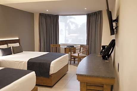 This air-conditioned room features 2 double beds, a TV and a coffee maker. It offers views of the city or of the pool.