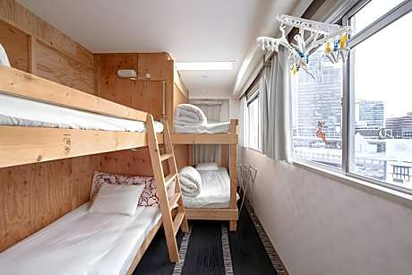 Featuring free toiletries, this quadruple room includes a shared bathroom with a shower, a bidet and a hairdryer. A kitchenette fitted with a stovetop, a refrigerator and a microwave is available for cooking and storing food. The air-conditioned quadruple room features a flat-screen TV, a dining area, an electric kettle, a sofa as well as city views. The unit has 4 beds.
