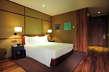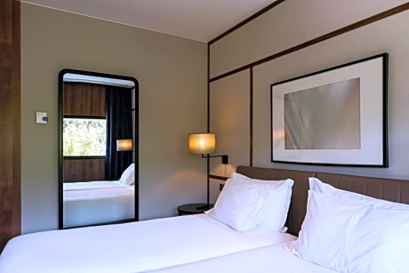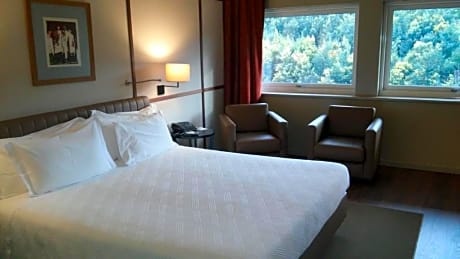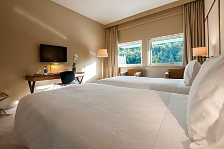Located in the heart of historical Guimarães, Hotel de Guimarães features a spacious indoor pool and offers rooms with cable TV. Palace of the Dukes of Bragança, the city walls and the Salado Monument are within a 15-minute walk. The air-conditioned accommodations at Hotel de Guimarães feature contemporary furnishings and a LCD TV. They come equipped with a safety deposit box and a mini-bar. The restaurant D. Maria is decorated in warm colors and offers panoramic city views. It serves a buffet breakfast and seasonal Mediterranean cuisine. The Piano Bar serves a selection of beers, wines and refreshments. Guests of the Hotel de Guimarães can relax in the sauna, and enjoy a massage or body treatment. The hotel also a features a large fitness center. Hotel de Guimarães offers free on-site public parking.