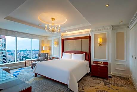 Guiyang Kempinski Hotel provides flawless service and all the necessary facilities for visitors. Stay connected with your associates, as complimentary Wi-Fi is available during your entire visit. To facilitate your arrival and departure, you can pre-book airport transfer services prior to checking in.The hotel offers car hire and shuttle amenities for your ease in navigating around Guiyang.When arriving by car, you'll be grateful for the on-site complimentary parking at hotel. The hotel offers reception amenities including concierge service, express check-in or check-out, luggage storage and safety deposit boxes to ensure a comfortable stay for guests.Whether it's an extended stay or simply needing fresh attire, dry cleaning service and laundry service provided by hotel ensures your cherished travel garments stay spotless and accessible.Your stay will be comfortable with the presence of 24-hour room service, room service and daily housekeeping as an in-room amenity for your relaxation and enjoyment.Smoking is permitted solely in the specified smoking zones allocated by hotel.In order to ensure the utmost level of relaxation, the guestrooms feature an inviting design and are equipped with all basic necessities, creating a delightful stay experience. To ensure your satisfaction, certain rooms in the hotel come fitted with blackout curtains for a more pleasant stay.In select rooms, visitors can enjoy a touch of amusement with the availability of television and cable TV for their entertainment needs. Within specific rooms, a refrigerator, a coffee or tea maker, bottled water, instant coffee, instant tea and mini bar is conveniently available for your use. Understanding the significance of bathroom facilities in enhancing visitor contentment, hotel offers a hair dryer, toiletries and bathrobes within a few chosen chambers. Start your day stress-free at Guiyang Kempinski Hotel as breakfast is made available for you on the premises. How about kicking off each day of your getaway with a delicious cup of coffee? At the hotel, relish in the invigorating taste of a freshly brewed, excellent coffee.Various excellent meal offerings at hotel ensure that enticing and easily accessible options are constantly available. Upon your arrival, don't miss experiencing bar for enjoyable in-house evening entertainment. Throughout the day, engage in the entertaining activities available at Guiyang Kempinski Hotel.Guests who enjoy maintaining their fitness regimen while on holiday can visit the fitness center provided by hotel.