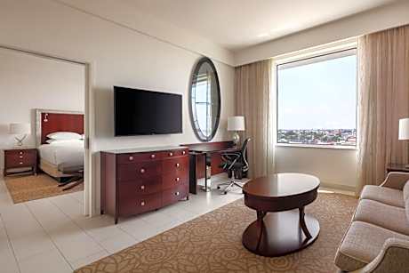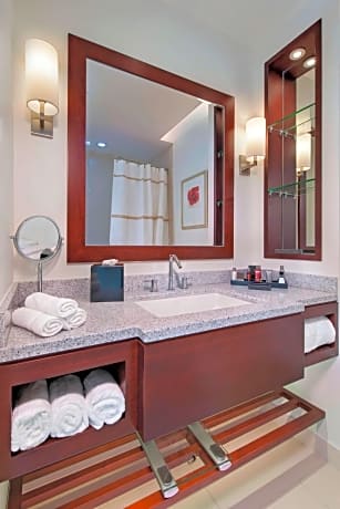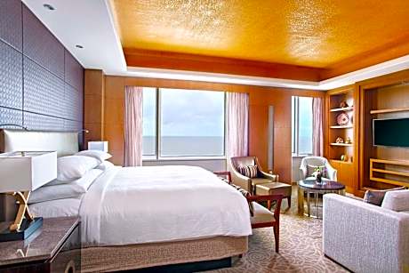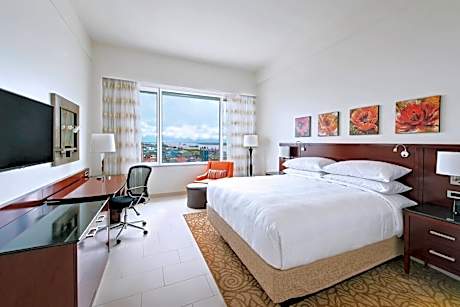 Featuring an outdoor pool, state-of-the-art fitness center and picturesque views of the Demerara River, Guyana Marriott Hotel Georgetown offers unique accommodations just a few yards from Georgetown's central district. WiFi access is available throughout the entire property. Guests staying at the Guyana Marriott Hotel Georgetown can enjoy the property’s modern yet luxurious style while experiencing Georgetown's historic architectural splendor. With a detailed décor, each room at the hotel offers views of the ocean or Georgetown's city lights. All of them include a flat-screen cable TV, mini-bar, high-speed WiFi access and desk. Private bathrooms come complete with a bath and hairdryer. A coffee machine, iron and safety deposit box are also provided. Additional facilities include a pool bar and grill from where guests can witness the sunset, as well as a 24-hour front desk, a garden and gift shop. Banquet rooms and meeting facilities are available to accommodate intimate or large-scale events. The property offers free parking on site.