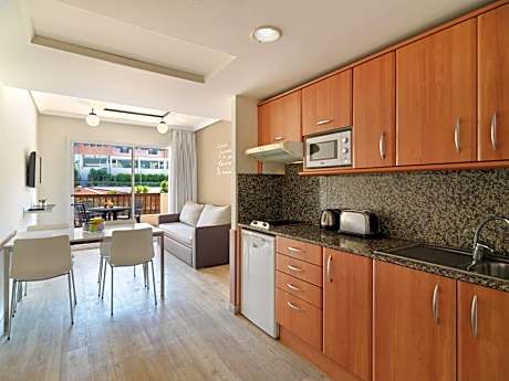 Located 656 feet from Cap Salou Beach, H10 Mediterranean Village offers views of the Costa Dorada. It features 2 outdoor swimming pools, and apartments and rooms with private balconies. H10 Mediterranean Village also includes an indoor swimming pool, a children's pool, fitness center, and a sauna. Les Oliveres buffet restaurant features show cooking and a children's buffet, while La Terraza snack bar can be found near the pool. The complex also has a pizzeria, Il Forno; á la carte restaurant, La Masia; and a supermarket. The hotel offers a children's entertainment program and a playground. The center of Salou is 1.2 mi away while the Port Aventura Theme Park is just 1.9 mi away. Half board regimens do not include drinks The H10 Mediterranean Village opens a new children's water park and Splash Park. It has slides, a play area and water jets.